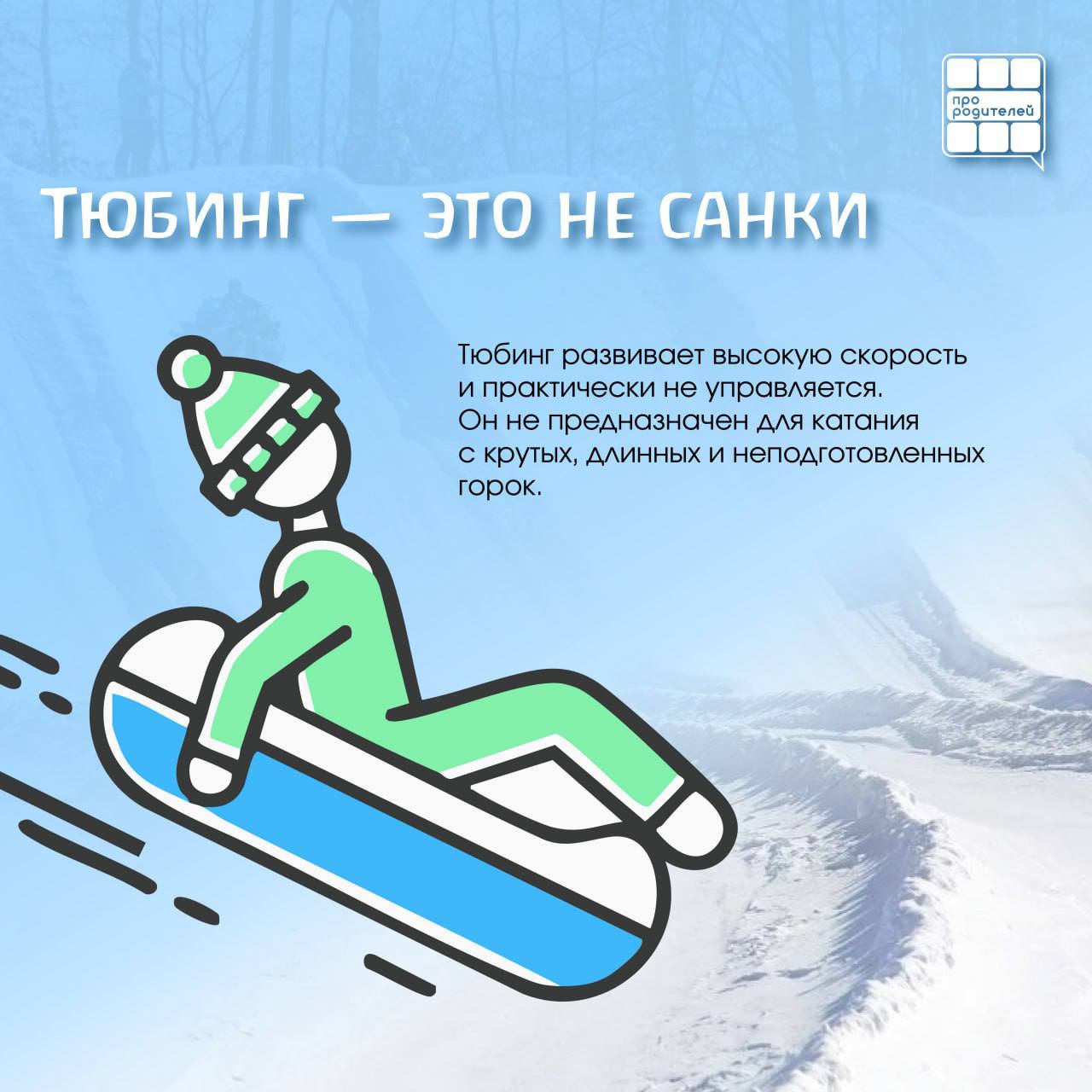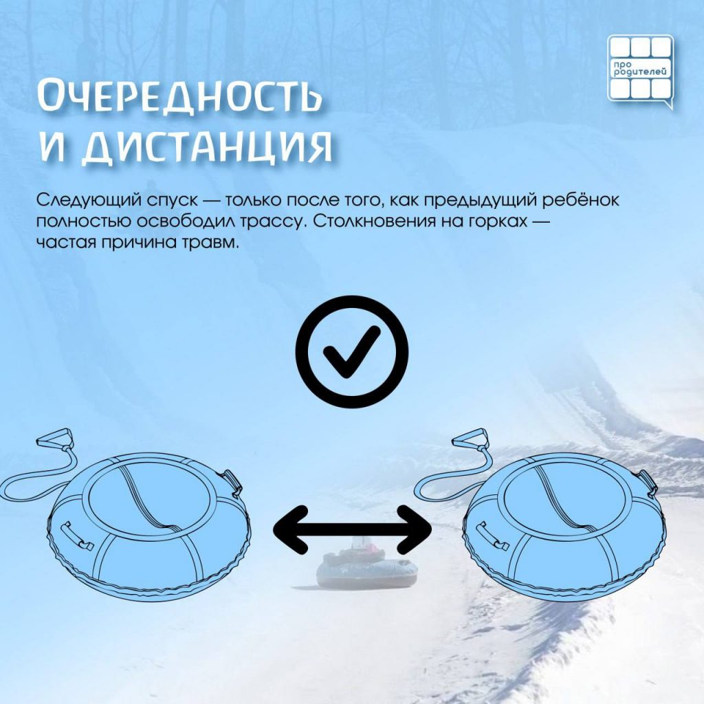 Мы подготовили эти карточки, чтобы помочь родителям спокойно и понятно обсудить с детьми основные правила катания на тюбингах и горках. Соблюдение этих простых рекомендаций поможет сохранить зимний отдых радостным, а главное — безопасным.